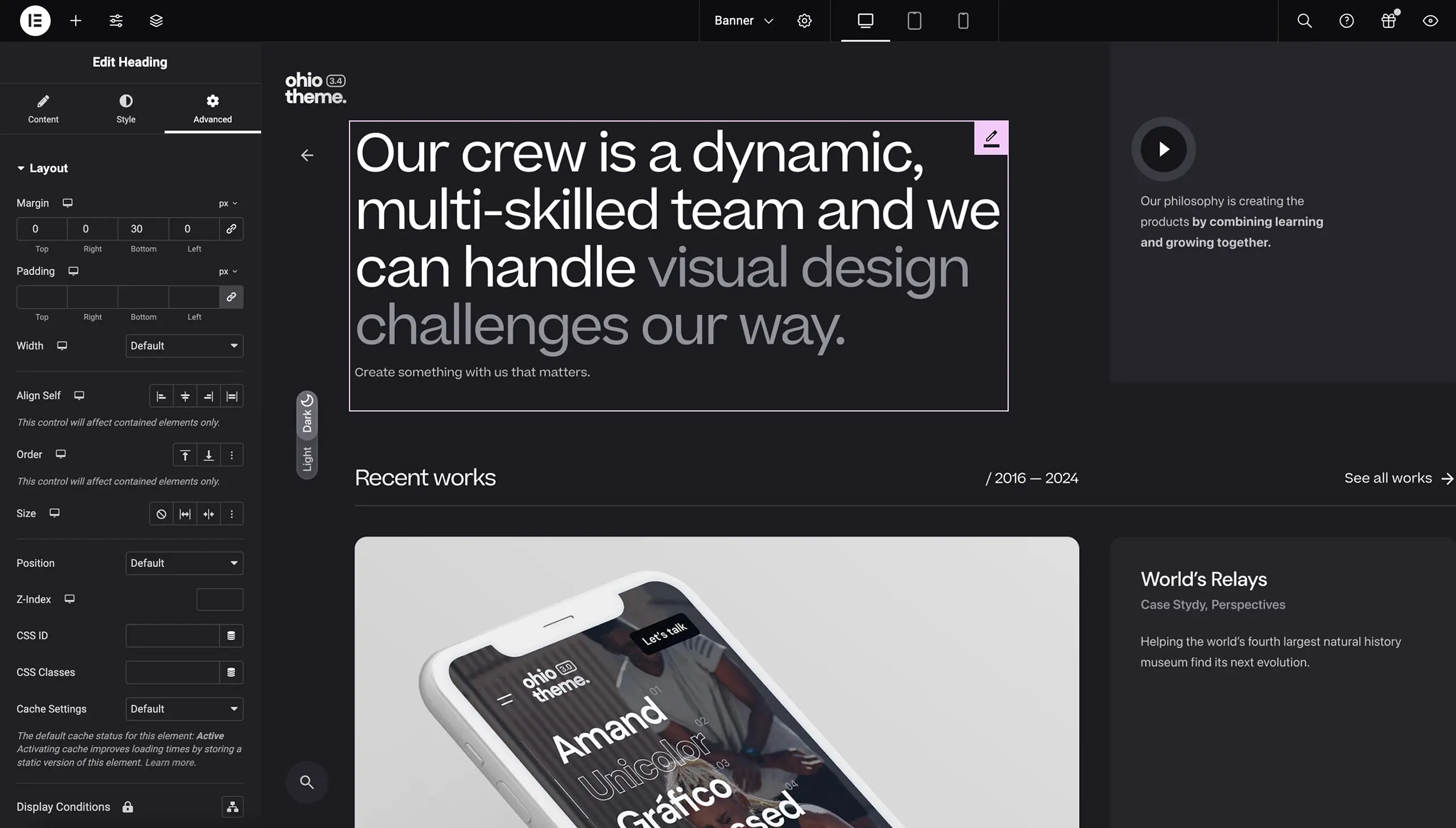 theme settings panel.